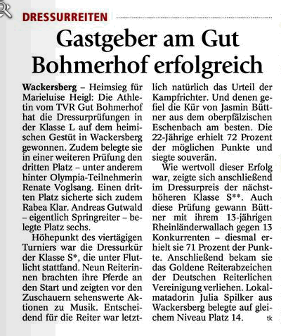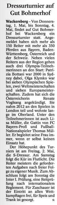 Tölzer Kurier, Dressurturnier (Vorbericht)
